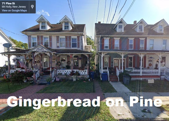 My walks along different routes in town provide an informal survey of Mount Holly architecture. From lovely Gingerbread Victorians on Pine or High to the Federal Period homes on Garden and Brainerd, many great historic buildings in this town are maintained with love.