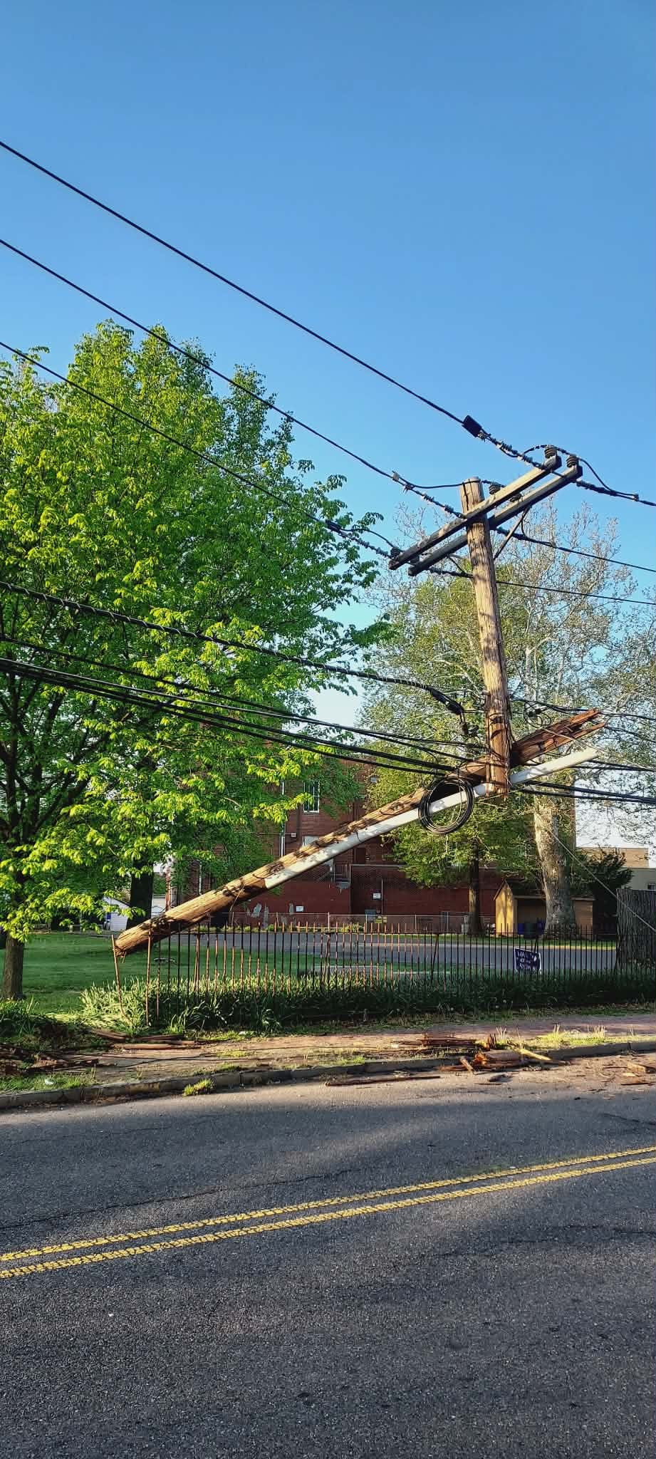At about 4am this morning, a vehicle cut a telephone pole in half and took out a section of the Quaker Meeting House fence on Garden Street. Police state that there are no reported injuries and PSE&G will arrive sometime after 8 am to effect repairs.
