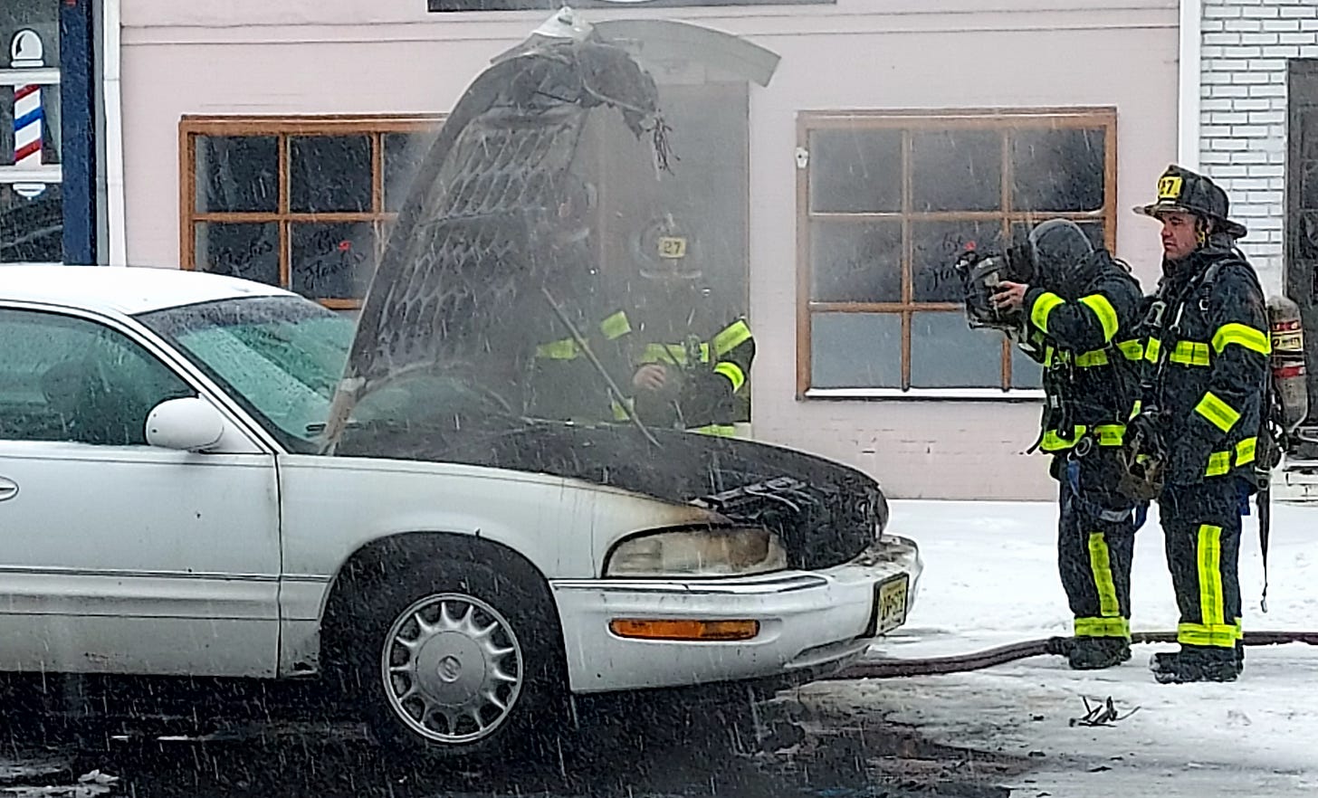 Volunteer Firefighter Andre Younger Responded In The Snow To A Car Fire Today