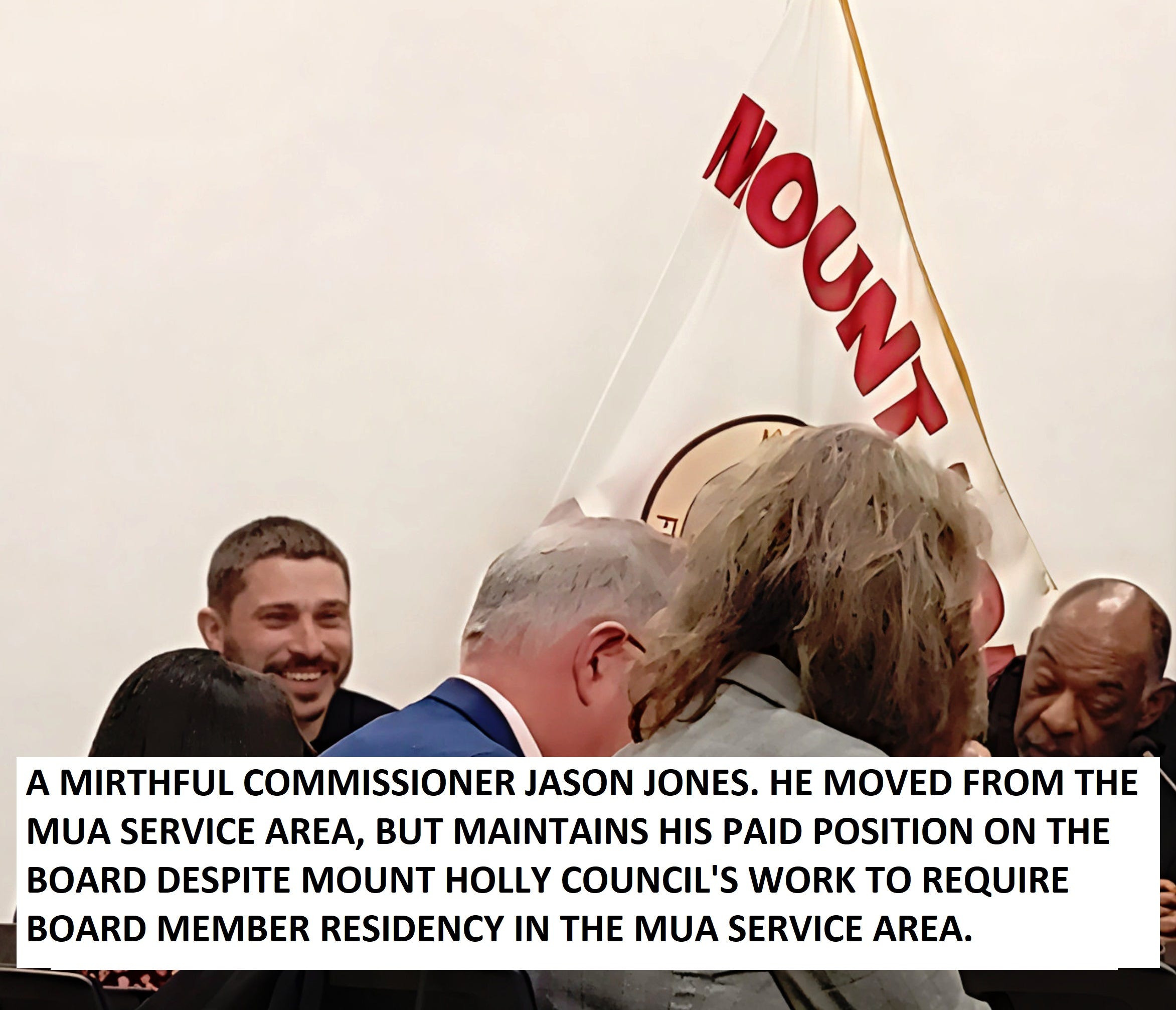 Confusion regarding legal requirements for residency was resolved at the February 9, 2026 Mt. Holly Town Council Meeting. Township Clerk Sherry Marnell stated that there was a requirement for MUA Commissioners to live within the MUA townships. But Council member Burkus said she could not find that requirement in writing. And so, Ms. Burkus asked Town Solicitor Tom Coleman to state whether there was a legal residency requirement for Commissioners. Mr. Coleman noted that while the historic practice was to appoint Commissioners from the MUA service area, there is no legal requirement to do so.