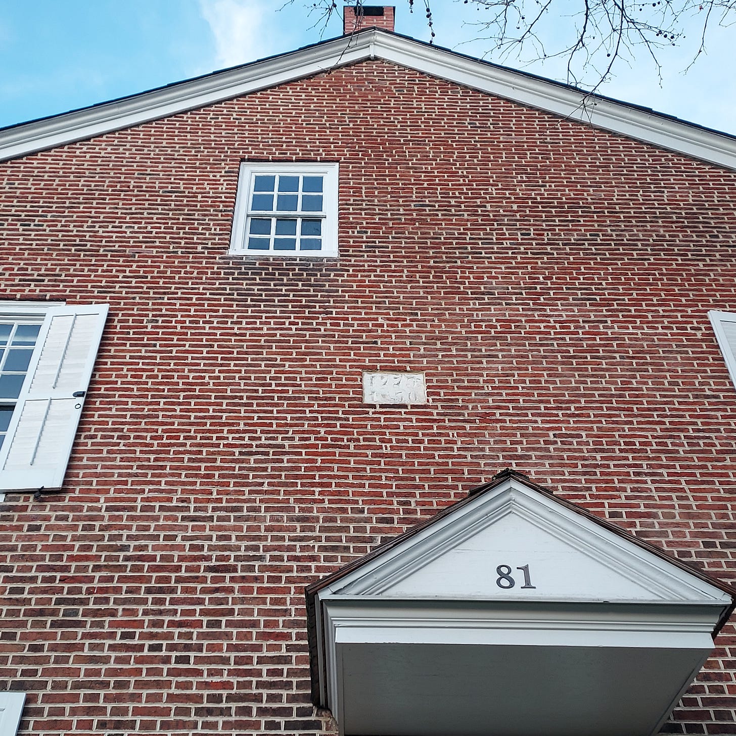With the historical record now corrected, we considered some less controversial facts about the Meeting House. It has a marble stone built into the front of its brick wall that proclaims two dates for the building: 1775 and 1850. And if you study the walls you will notice a clear demarcation where both the brick color and bond patterns change, signaling the date change from the first to second floor. And speaking of floors, the building has what Robbins calls “Southern Yellow Pine” which looks identical to the flooring used in my own 1830 home on Garden Street and boards that I salvaged from a renovation job on Buttonwood Street. Closing out our discussion about Quaker history, I learned that an original Meetinghouse was located toward the rear of the property now occupied by the new cannabis dispensary called Voltair on Mill Street.