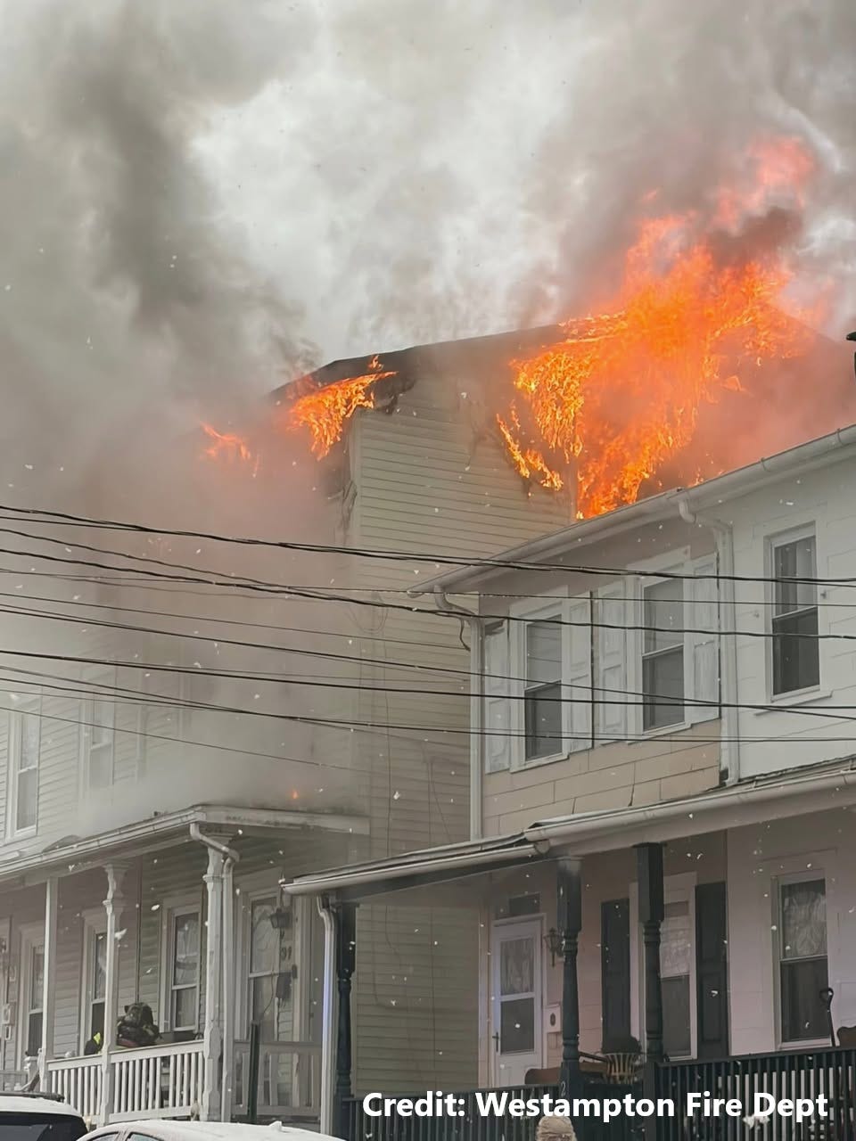 A fire started this morning at 31 Buttonwood Street and eventually involved an attached home at 33 Buttonwood. According to the Westampton Fire Department Facebook post, responders “encountered a well-developed fire on the third floor of a duplex. Firefighters worked quickly and aggressively to initiate an attack, successfully containing the fire to the floor of origin. One minor injury was reported at the scene.”