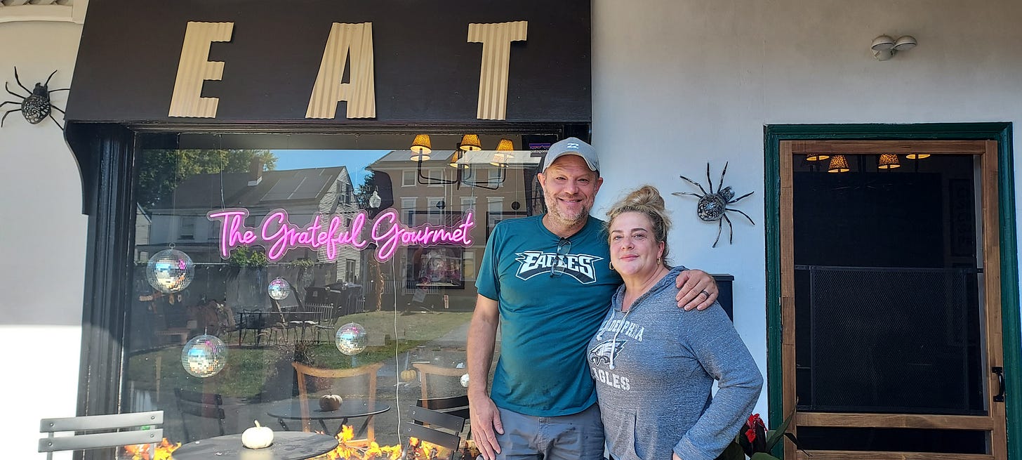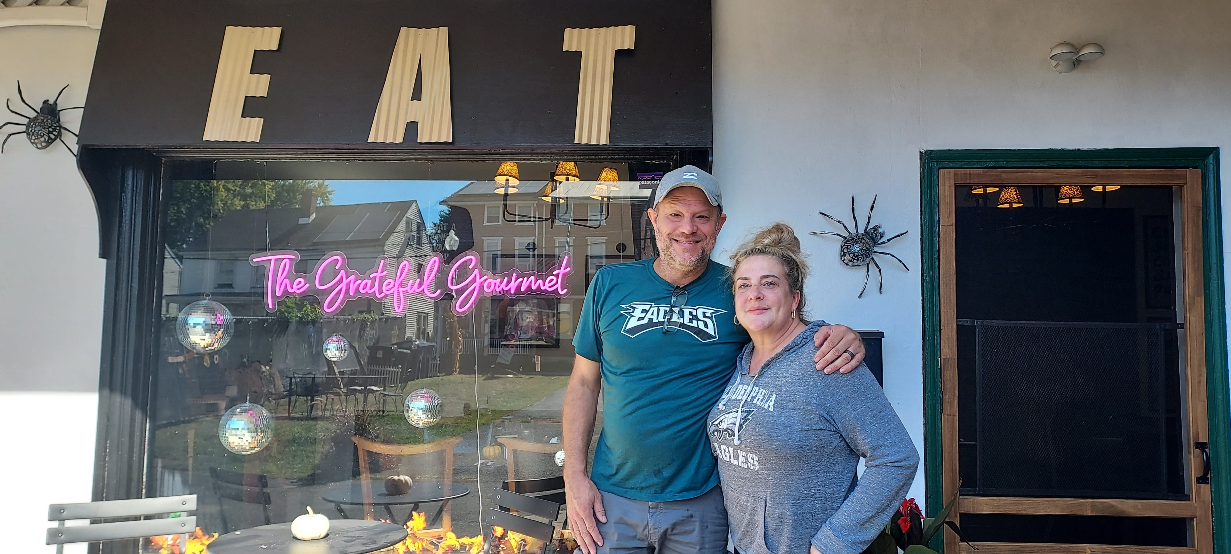 Desiree Bagnell and her husband Paul outside The Grateful Gourmet on 10/5/2025