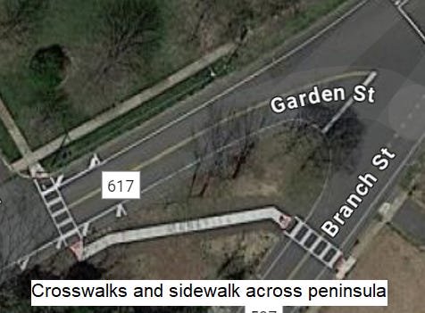 On November 12, 2020, the County Engineer informed me that a sidewalk and two crosswalks would be created at the peninsula separating Garden Street and Branch street! This was completed in January of 2021 to our delight.