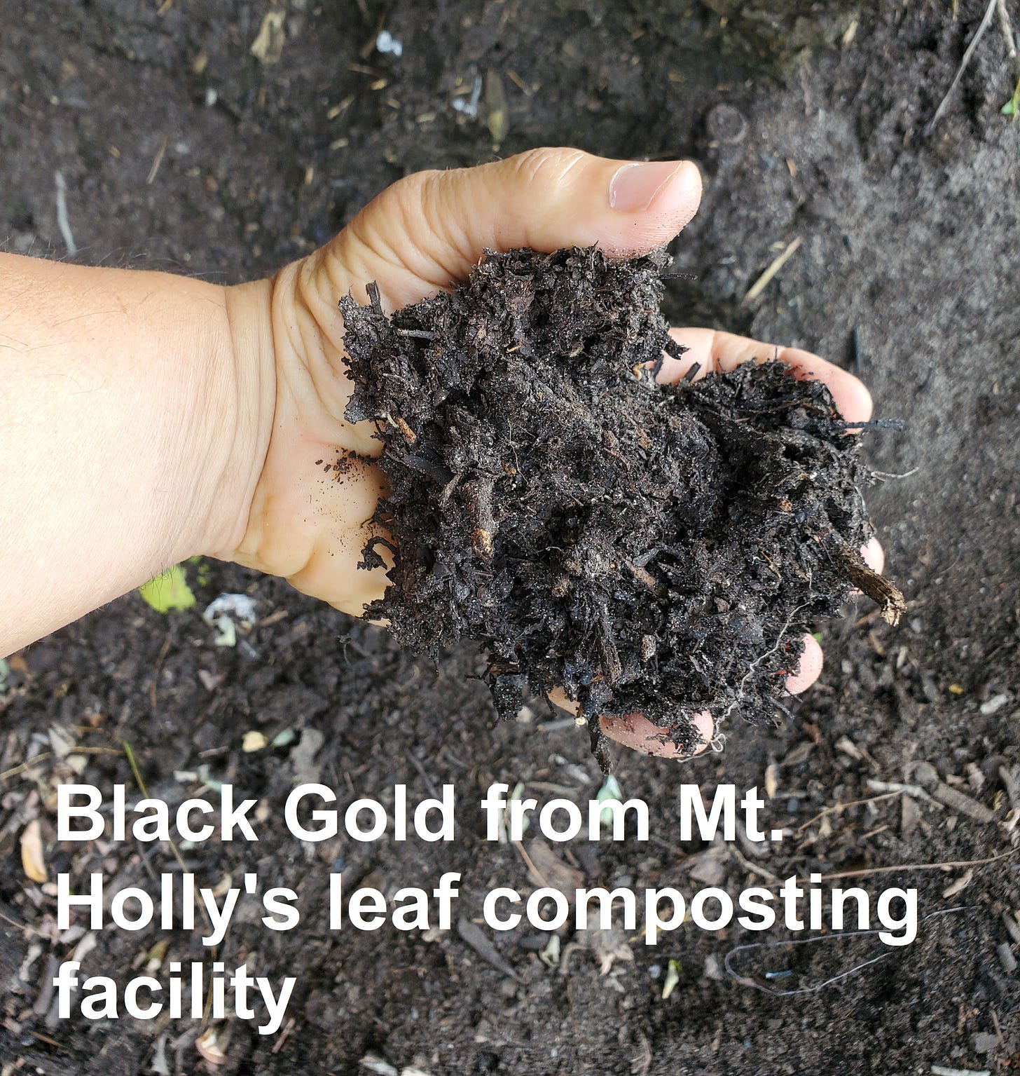 I was appointed to the Mount Holly Environmental Committee a some years back and when our committee created a “pollinator garden” on High Street, I was told that Public Works would deliver a load of compost to the site. As we spread the compost I noticed that it was a lovely rich leaf compost, made of leaves collected from our streets in the Fall. There were occasional bits of shredded plastic from bottles sucked up by that Public Work’s “Vac Truck”. But otherwise, the compost seemed to be high quality.