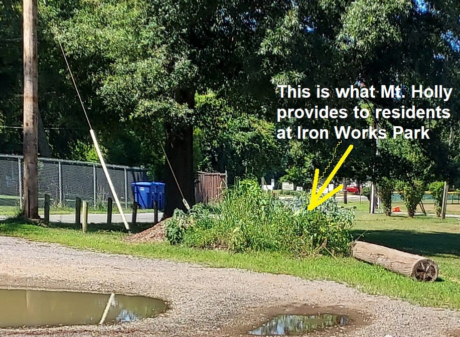 Mount Holly’s “Free Compost” is a tiny weed-covered pile at the rear of Iron Works Park near the boat launch. At least it was a couple months ago when I last checked. To the best of my knowledge, the township has made no effort to inform residents about this resource, despite acknowledgment from the Mayor that they should.